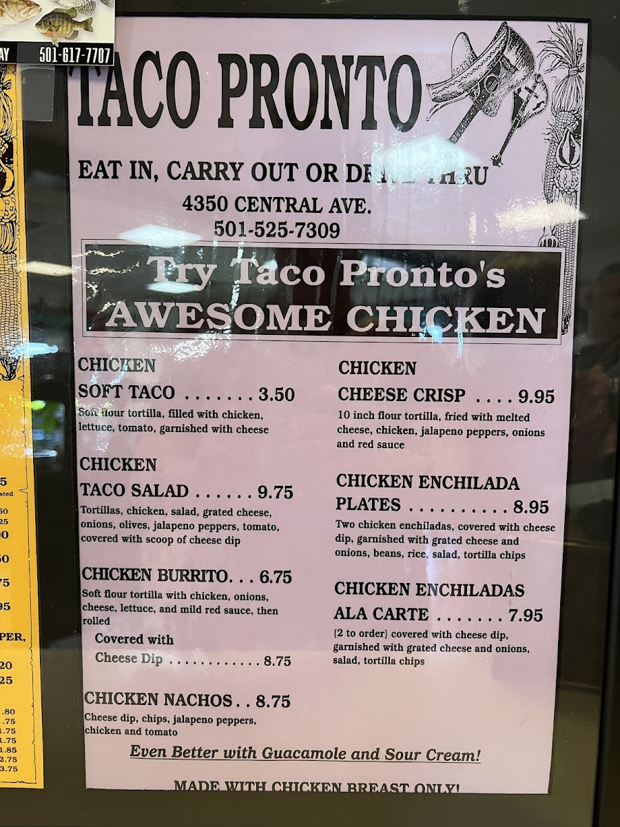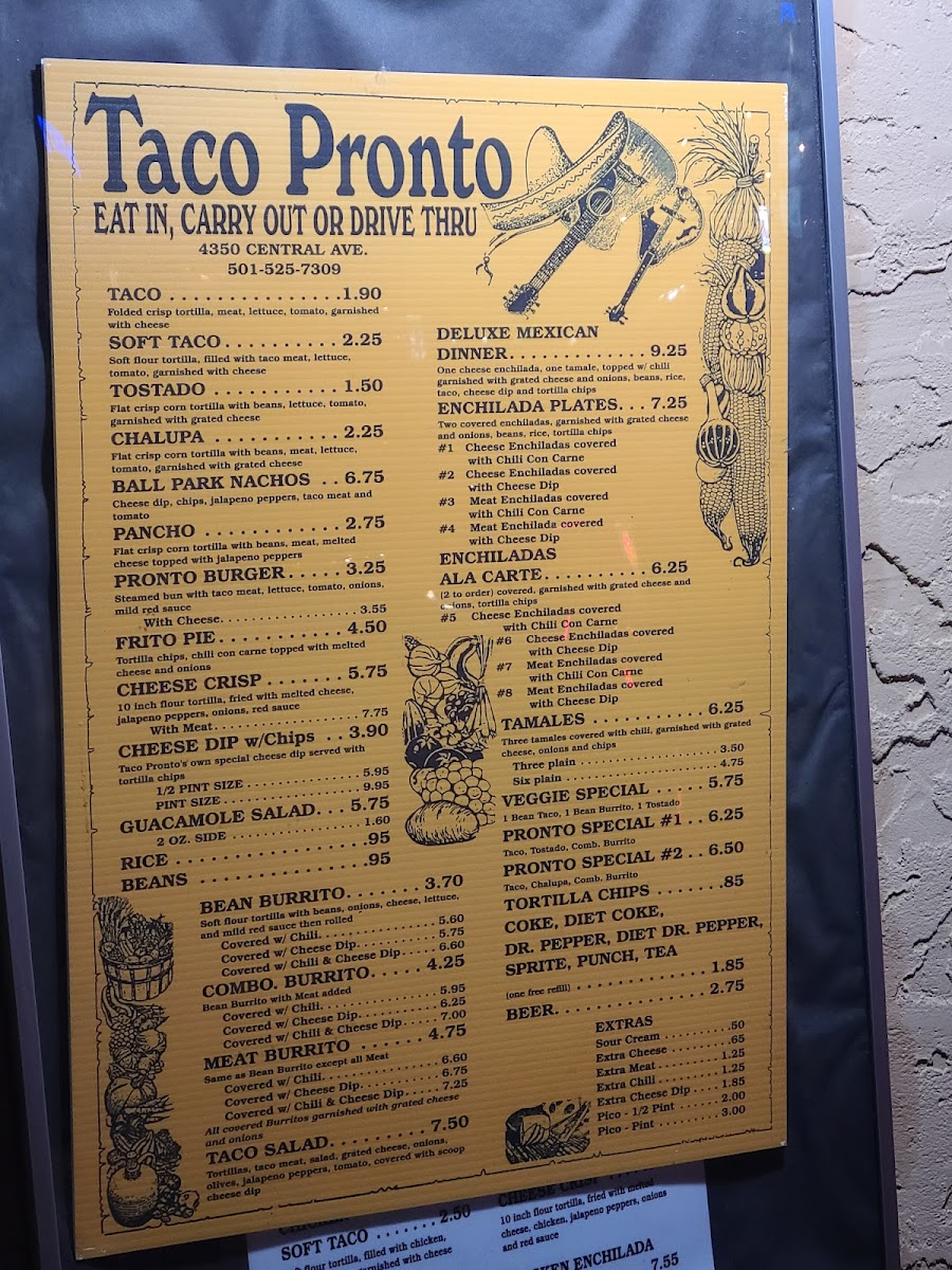 Welcome to Taco Pronto, the beloved culinary gem nestled in the heart of Hot Springs, Arkansas. Known for its delightful and authentic Tex-Mex offerings, Taco Pronto presents an array of tantalizing options. From the classic Soft Taco at just $2.00 to the hearty Chicken Burrito priced at $4.35, every dish embodies comfort and flavor.
